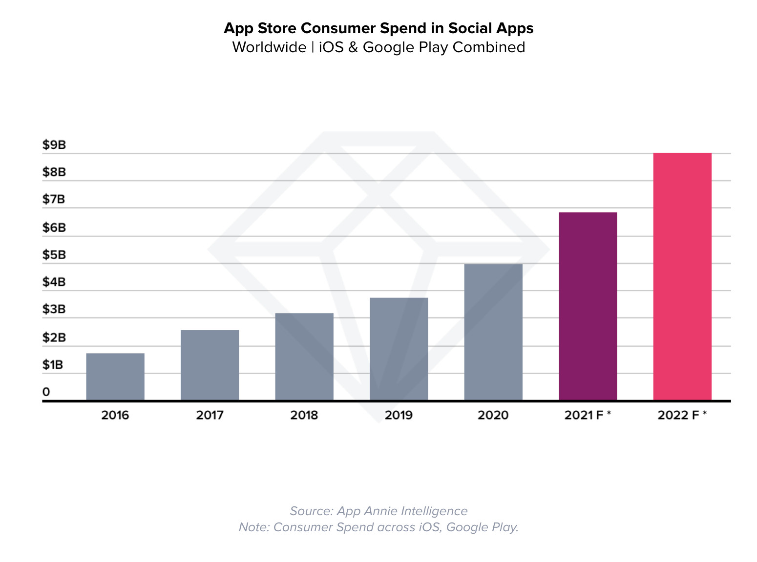 преодолел рубеж в $3 млрд по тратам пользователей за все время. 6. Ожидается рост объема рынка социальных приложений на