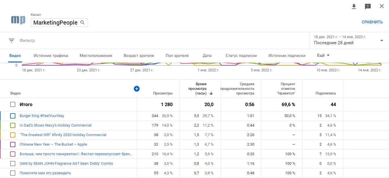 Кроме того, что анализировать контент стало легче, так ещё и с отчётами работу упростили. Неожиданно настиг дедлайн по кварталке? Можно зайти в YouTube Studio и быстро наделать понятных и красивых визуализаций.