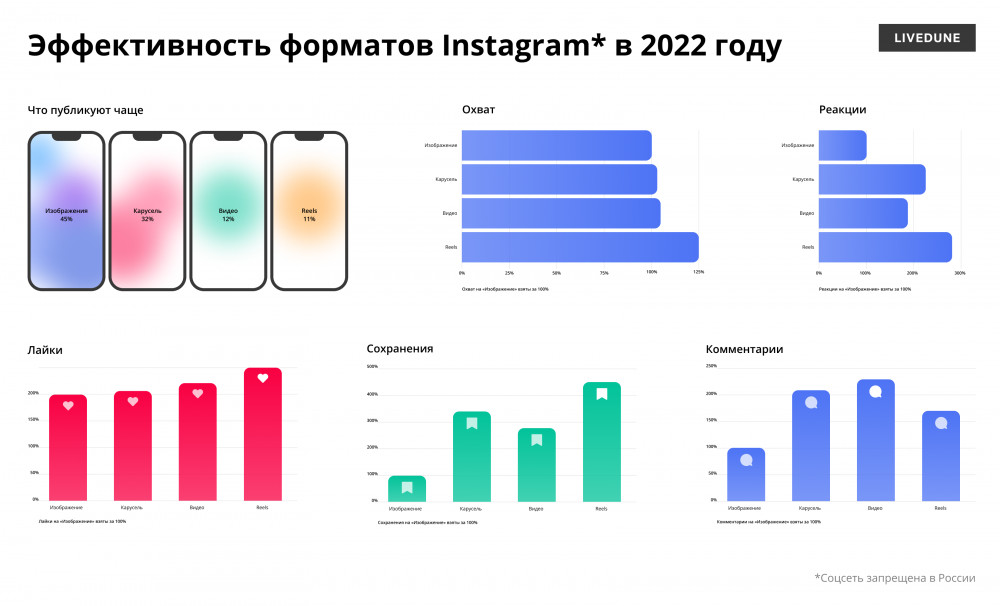 Исследование сервиса аналитики LiveDune определило самый эффективный формат для публикации в Instagram* в 2022 году