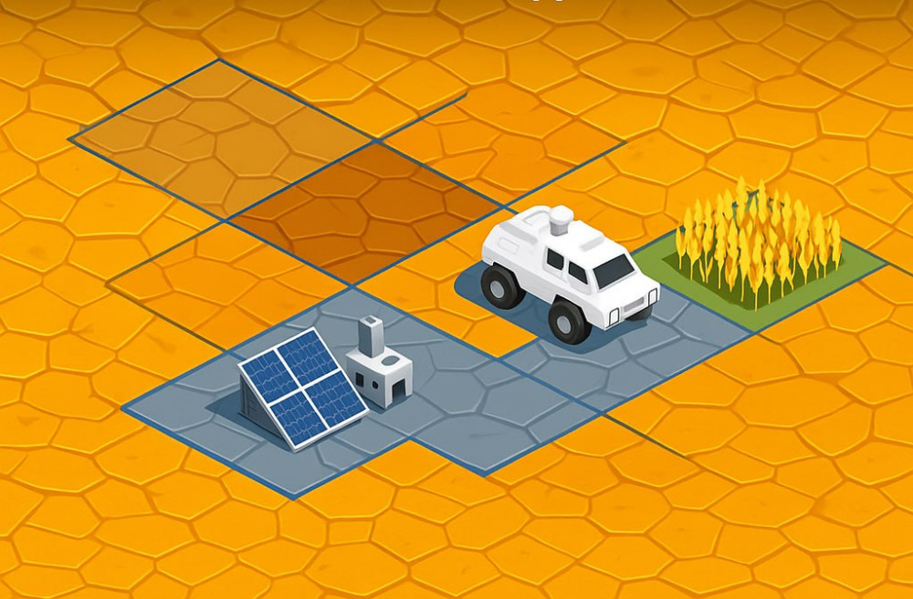 Это стратегия/песочница в марсианском сеттинге.У игрока есть ровер, энергия, инвентарь, ресурсы и большая карта.
