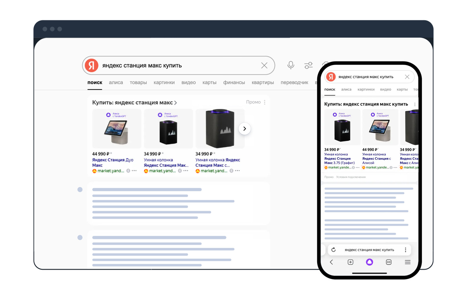 Товарные объявления формируются на основе ассортимента сайта или специального файла — товарного фида. Они показываются: