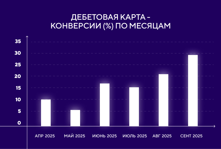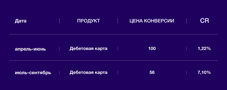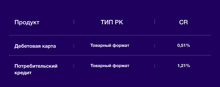 - Адаптировать товарный формат рекламы под сегмент B2C для продвижения дебетовых карт и кредитов.