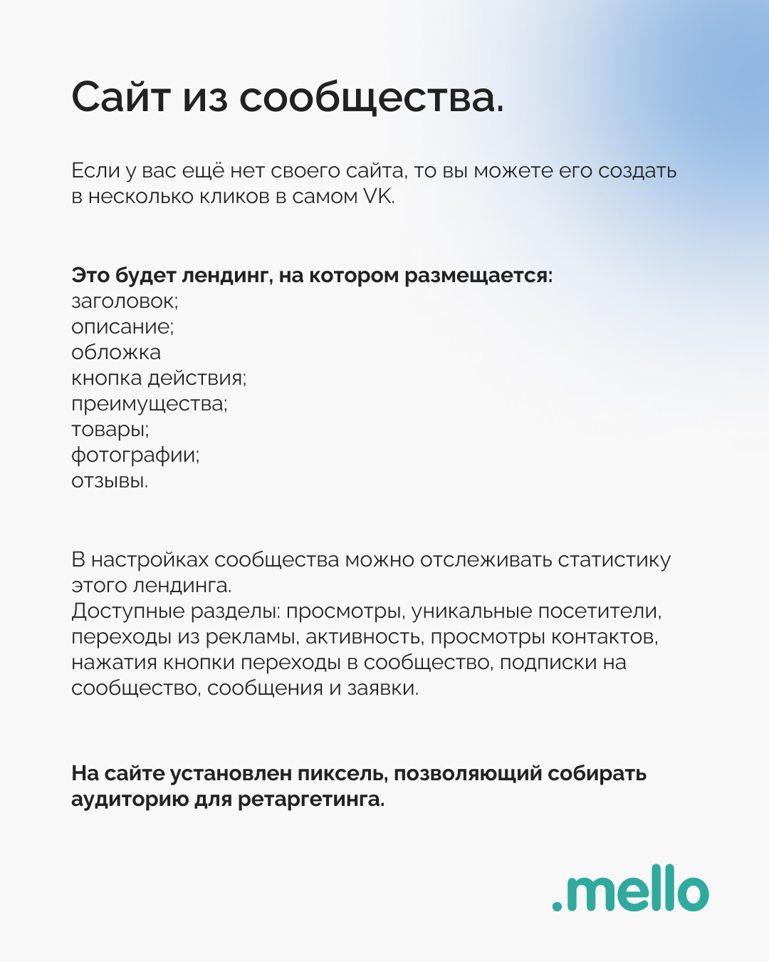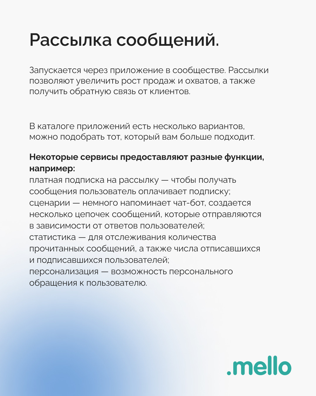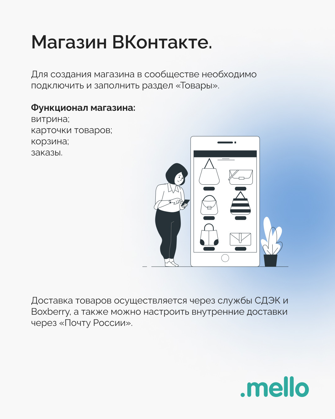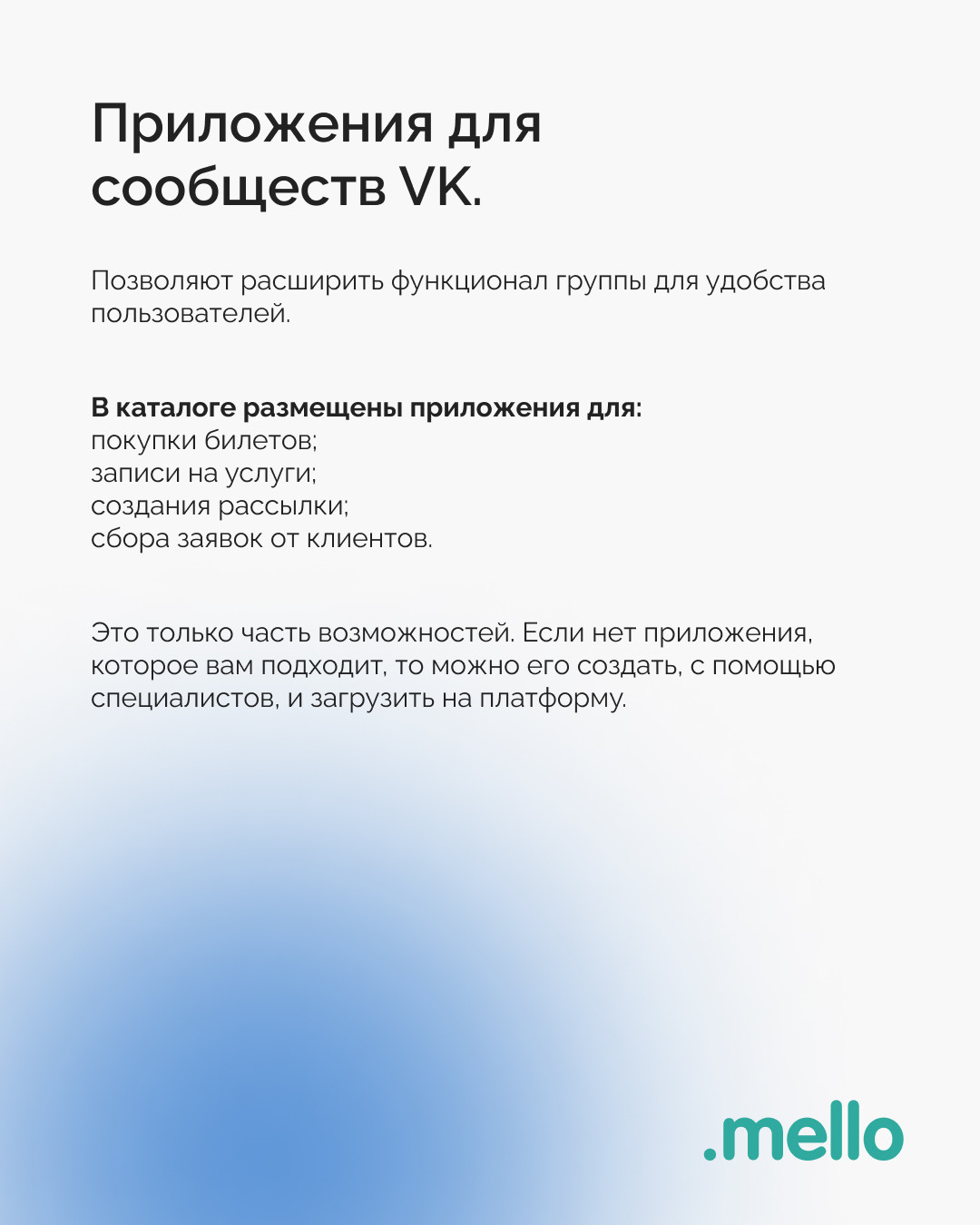 Здесь есть и инструменты рекламного продвижения, и возможность развивать сообщество органически. В карточках выделили основные возможности, которые предоставляет платформа для развития сообщества бизнеса. Указали как платные, так и бесплатные возможности продвижения.