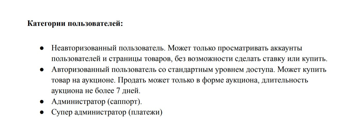Уточняем у заказчика детали и начинаем описывать роли в сервисе — то есть перечень тех, кто будет им пользоваться.