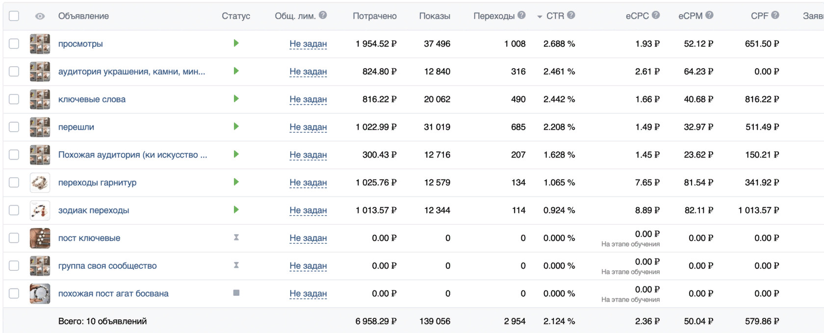 -Средний чек: 3600 руб Важная мысль: рекламная кампания введется с 2017 года и текущие результаты только стали намного лучше, чем раньше. Ниже скрин результатов рекламной кампании март 2022 года. Как вы можете заметить, клики по 2 рубля, конверсия в продажу стала только лучше. За все время работы мы создали 102 рекламных кампаний и более 5000 рекламных объявлений. К большому сожалению из-за подписанного NDA мы не можем раскрыть данных по объявлениям и самого клиента. Пишите нам мы расскажем и можем показать наши результаты в реальном времени. Мы использовали следующую систему, которая принесла результат нашему клиенту. Как многие слышали или знают, что аудитории делятся на 3 вида: К горячим мы относим: база клиентов заказчика, подписки группы, друзья админов и пиксель сайта. К теплым мы относим: базу конкурентов, подписчики сообщества конкурентов, друзья админов конкурентов и контекстный таргетинг. К холодной аудитории — все остальные :) Для каждой аудитории мы использовали свои системы. Для начала мы начали «лить» трафик на холодную аудиторию и собирать действия и реакции, а далее начали утеплять аудиторию с помощью рекламных креативов. Холодную аудиторию мы сегментировали на: эзотерику, интересы украшений, гео, возраст и другие признаки ЦА. Рекламная кампания во ВКонтакте играла дублирующую роль и служила больше для поддержки рекламной кампании Яндекс.Директ, но нам удалось использовать дополнительные возможности ВК для увеличения охвата целевой аудитории, а именно: Показы 650 382 Клики 3 095 Бюджет 74 997 руб Заявки 14 Стоимость заявки 5 357 руб Хочешь также? Пиши в комментариях «Хочу лиды» и получи бесплатный разбор твоего проекта!