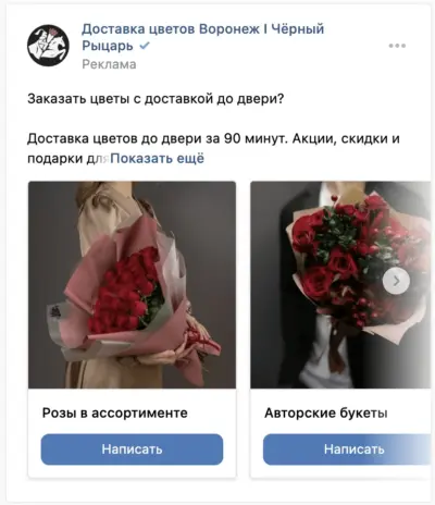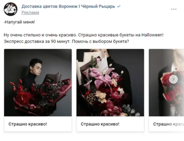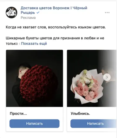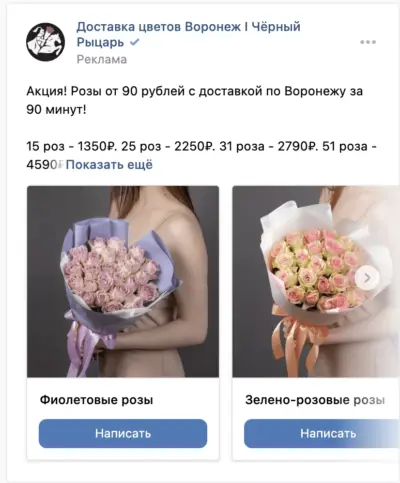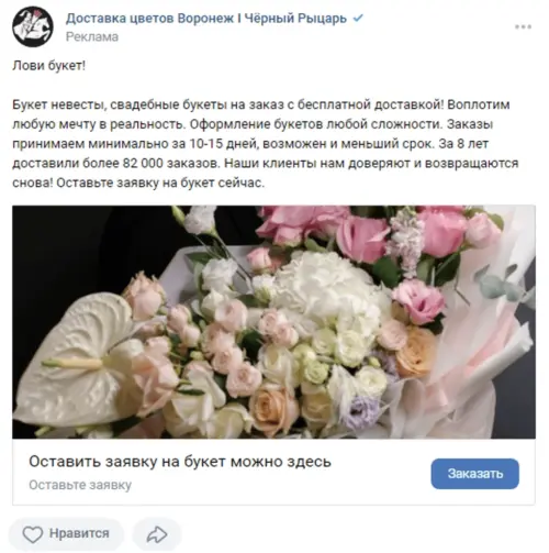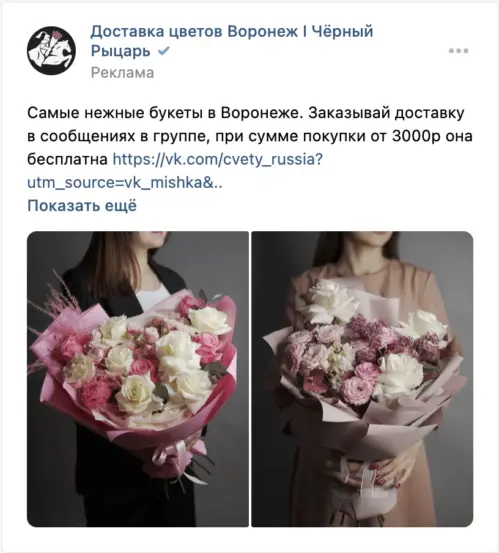 Ранее использовались намного чаще не креативы, а фотографиии букетов.