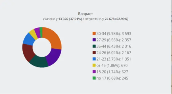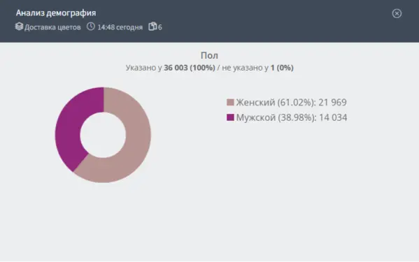 - 61% — женщины, 39% — мужчины , т.е. будем запускать рекламу на оба пола