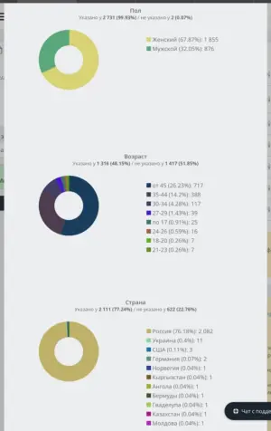 - 67% — женщины, 32% — мужчины, т.е. будем запускать рекламу на оба пола