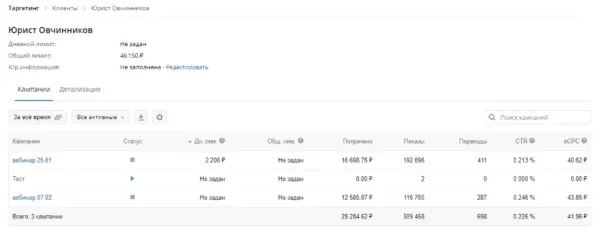 Основной задачей для ведения трафика было увеличение имеющегося потока клиентов, через вебинары.