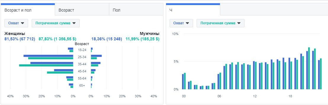— оптимизация бюджета — ежедневный. В формы захвата добавлены краткие вопросы, чтобы клиент прописал ответ. Таким образом мы минимизировали количество не целевых заявок. Результаты рекламных кампаний. Получено лидов: 583. Стоимость одного лида: 2,40 $. Охват: 83 056. Показы: 313 754. Клики по ссылке: 2 626. Основное количество лидов, получено возрастом 35-44. Лучшее время для охвата и показа: после 21:00.