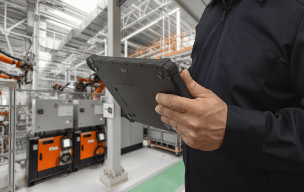 Вместо панельного ПК инженеры используют промышленный планшет MIG T10×86 и набор специализированных аксессуаров.