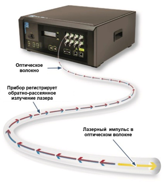 В технологии оптоволоконной сенсорики анализируется распространение световых импульсов в оптическом кабеле: компактный прибор — когерентный рефлектометр — посылает в оптоволокно и принимает рассеянные в нём модулированные импульсы света. Любое внешнее физическое воздействие на кабель — температура, вибрация, звук, натяжение — меняет характеристики света в волокне, который анализируется в виде цифровой рефлектограммы с помощью алгоритмов цифровой обработки сигналов и ИИ.