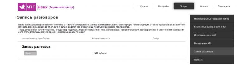разговоров автоматически доступна абонентам компании МТТ в тарифе «Офис продаж». В других пакетах ее можно