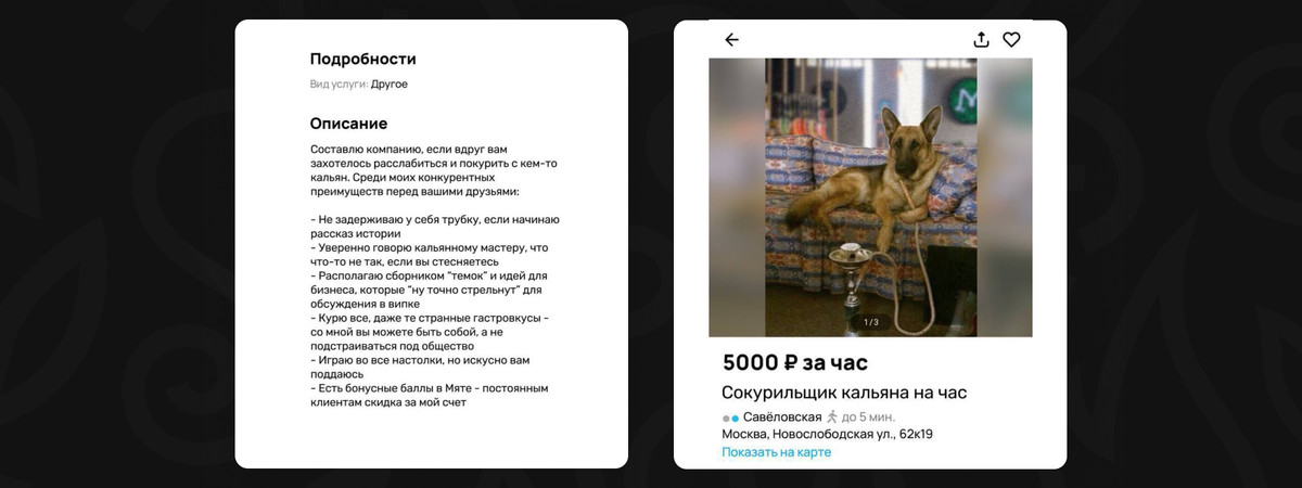 И не забывайте, что геопродвижение — это постоянная работа, а не разовое заполнение. Чем детальнее карточка и активнее коммуникация, тем выше шансы привлечь гостей. Или размещение рекламы в сообществах и группах социальных сетей. Посевы мы делаем не только брендовые, но и точечные, для поддержки заведений. Это могут быть как высокобюджетные, так и относительно недорогие кампании. Про крупные и охватные все и так понятно: есть бюджеты — делай. Но даже если они ограничены, есть разные варианты, как привлечь свою аудиторию и получить классные показатели совершенно бесплатно. — Например, посты в телеграм и вк-группах ближайших к заведениям ЖК. Тут, невысокие охваты, да, но основная их сила заключается в том, что они касается максимально целевой аудитории. Люди, живущие рядом, чаще всего проявляют интерес к заведениям в шаговой доступности, поэтому такая реклама может оказаться весьма эффективной. — Вы всегда можете придумать классный инфоповод, интересно оформить его и предложить на публикацию каналам. Например, мы выложили услугу на Авито — Сокурильщик кальяна. Сделали смешное описание, интегрировав систему лояльности, заскринили и отправили нескольким пабликам. Из 10 опубликовали новость 4, другие каналы просто забирали контент у них, подхватывали и тоже делились. Мы получили бесплатный охват более 2 млн. «Блогеры не работают» — это как сказать, что беговая дорожка бесполезна, потому что ты на ней просто стоял. Инфлюенс-маркетинг — это инструмент. Работает он или нет, зависит от того, как ты его запускаешь и приносит результаты, которые не дает ни один флаер. Выбирая блогеров, важно обращать внимание на их аудиторию — чем больше ваш потенциальный гость соответствует ей, тем выше вероятность успеха. Следующее, что важно — насколько интересный и вовлекающий контент они делают. Блогеры могут делиться впечатлениями от посещения вашего заведения, публиковать обзоры, видео с атмосферой или просто снимать свой контент у вас с узнаваемой айдентикой бренда в кадре. Все это повышает интерес к вашему заведению, а также формирует лояльность аудитории инфлюенсера. Кроме того, взаимодействие с блогерами включает создание контента, который может быть использован и вами. Если вы еще не протестировали какой-то из инструментов, то не ждите, пока это сделает ваш конкурент. И не забудьте поделиться в комментариях, какие механики продвижения используете вы для привлечения гостей!