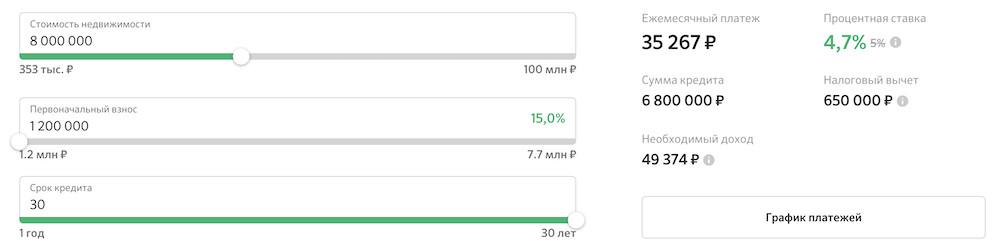 Минимальный первоначальный взнос для недорогой однушки будет около 1,2 млн рублей, а ежемесячный платеж — 35-50 тыс. рублей в зависимости от ставки.