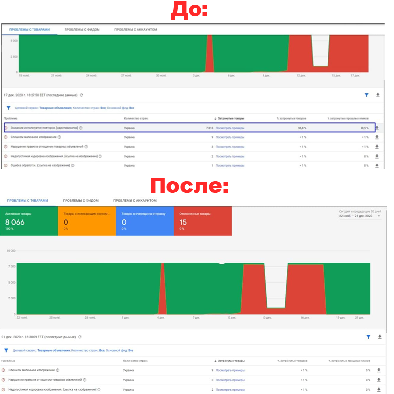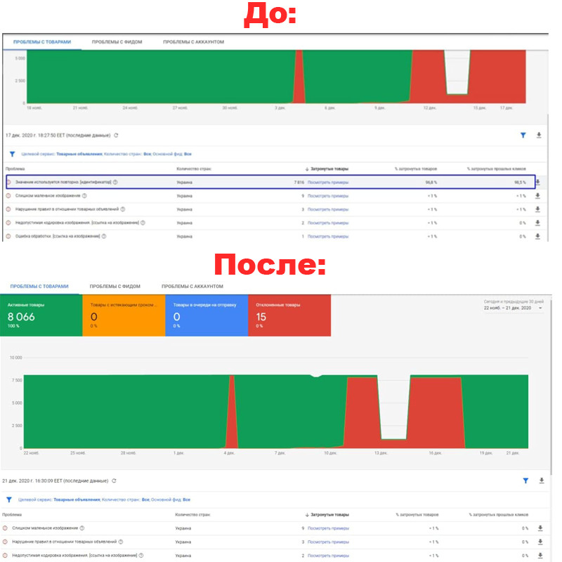 Как "передернуть" фид в Мерчант. Отклоненные товары из-за id