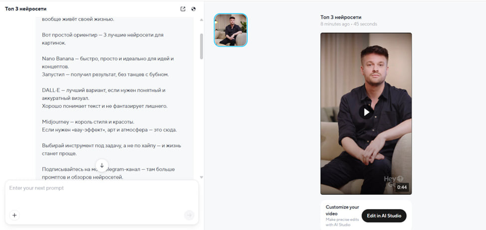 Ниже мы рассмотрим как генерировать сценарии, создавать видео и подключать их к чат-ботам