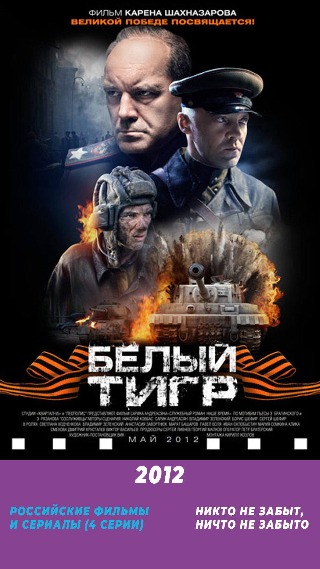 3) «Нюрнберг» (2022): 4) «Африка» (2022): 5) «Свидетели» (2018): 6) «Война Анны» (2018): 7) «Франц + Полина» (2006): 8) «Ладога» (2014): 9) «Брестская крепость» (2010): 10) «Калашников» (2020): 11) «Одна война» (2009): 12) «Звезда» (2002): 13) «Праведник» (2023): 14) «Подольские курсанты» (2020): 15) «Битва за Севастополь» (2015): 16) «Т-34» (2018): 17) «Собибор» (2018): 18) «Жажда» (2010): 19) «Бой местного значения» (2008): 20) «Матч» (2012): 21) «Воздух» (2023): 22) «Буду помнить» (2010): 23) «Спасти Ленинград» (2019): 24) «Ржев» (2019): 25) «Солдатик» (2018): 26) «Белый тигр» (2012): 27) «Ленинград» (2007): 28) «Летчик» (2021): 29) «Коридор бессмертия» (2019): 30) «72 часа» (2015): 31) «Поп» (2009): 32) «Сталинград» (2013): 33) «Боевая единичка» (2015): 34) «Переводчик» (2013): 35) «Разжалованный» (2009): 36) «Сестренка» (2019): 37) «Подрыв» (2022): 38) «Три дня до весны» (2017): 39) «Команда 8» (2011): 40) «Самогон» (2023): 41) «Девятаев» (2021): 42) «В августе 44-го» (2001): 43) «Паршивые овцы» (2010): 44) «Кукушка» (2002): 45) «Мы из будущего» (2008): 46) «Мы из будущего-2» (2010): 47) «Туман» (2010): 48) «Красный призрак» (2021): 49) «Сволочи» (2006): 50) «Сорокапятка» (2008): 51) «Блиндаж» (2024): 52) «Время вернуться» (2024): 53) «Дорога на Берлин» (2015): 54) «Лейтенант Суворов» (2009): 55) «Весури» (2019): 56) «Папа» (2004): 57) «Рябиновый вальс» (2009): 58) «Осенью 41-го» (2016): 59) «Враги» (2007): 60) «Праздник» (2019): 61) «Лето 1941 года» (2022): 62) «Через прицел» (2022): 63) «Три дня лейтенанта Кравцова» (2012): 64) «Наркомовский обоз» (2011): 65) «Тень врага» (2017): 66) «28 панфиловцев» (2016): 67) «Прощаться не будем» (2018): 68) «Семь пар нечистых» (2018): 69) «Благословите женщину» (2003): 70) «Свои» (2004): 71) «Рядовой Чээрин» (2021): 72) «Утомлённые солнцем-2: Предстояние» (2010): 73) «Утомлённые солнцем-2: Цитадель» (2011): 74) «Война и музыка» (2024): 75) «В июне 1941» (2008): 76) «На безымянной высоте» (2004): 77) «В тумане» (2012): 78) «Снайпер. Офицер СМЕРШ» (2017): 79) «Группа крови» (2025): 80) «...А зори здесь тихие» (1972): 81) «Судьба человека» (1959):