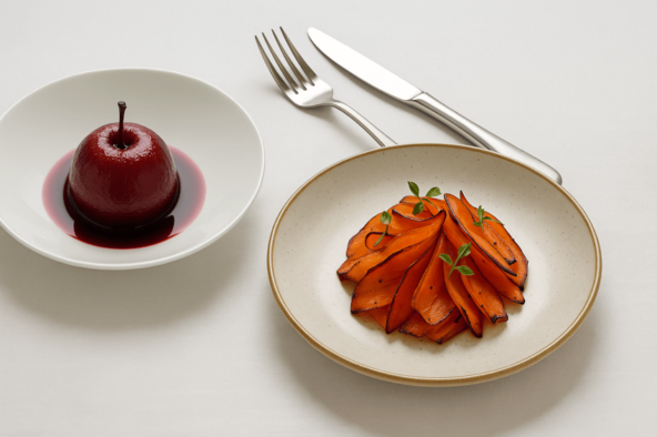 - Яблоко, томленое в свекольном соке и уксусе,: дает профиль маринованного языка