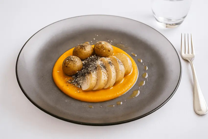 В классической кухне блюдо выстраивается от главного элемента — белка или основного овоща — к дополнениям. Обратная иерархия меняет логику: ключевыми становятся гарниры, соусы, масла, а основной ингредиент подбирается так, чтобы служить для них поддержкой, а не наоборот. В результате блюдо становится более объемным по вкусу, более сбалансированным и многослойным.