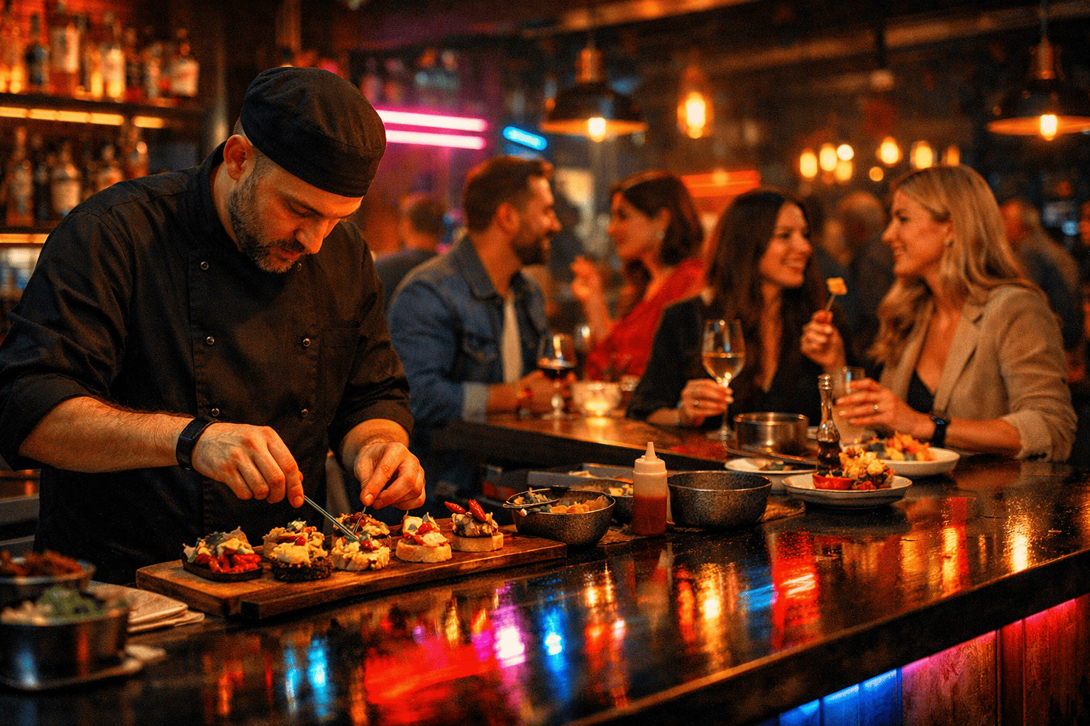 Гастро-вечеринка — это интерактивное кулинарное событие, где гости становятся активными участниками процесса. В отличие от классического ресторанного ужина, здесь вы не просто заказываете готовые блюда, а погружаетесь в атмосферу профессиональной кухни. Шеф-повар делится секретами приготовления, рассказывает о продуктах и технологиях, а участники пробуют себя в роли кулинаров.