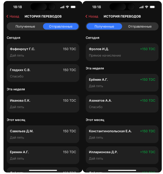 Всё началось с простого: благодарность здесь и сейчас, оформленная не просто словами, а монетами. Каждый сотрудник ежемесячно получает небольшое количество TDC, которые можно «перевести» коллегам — за помощь, инициативу, поддержку.