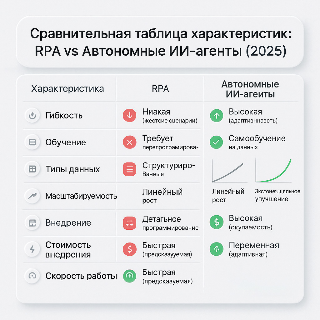 Автономные ИИ-агенты против традиционной автоматизации: техническое сравнение 2025