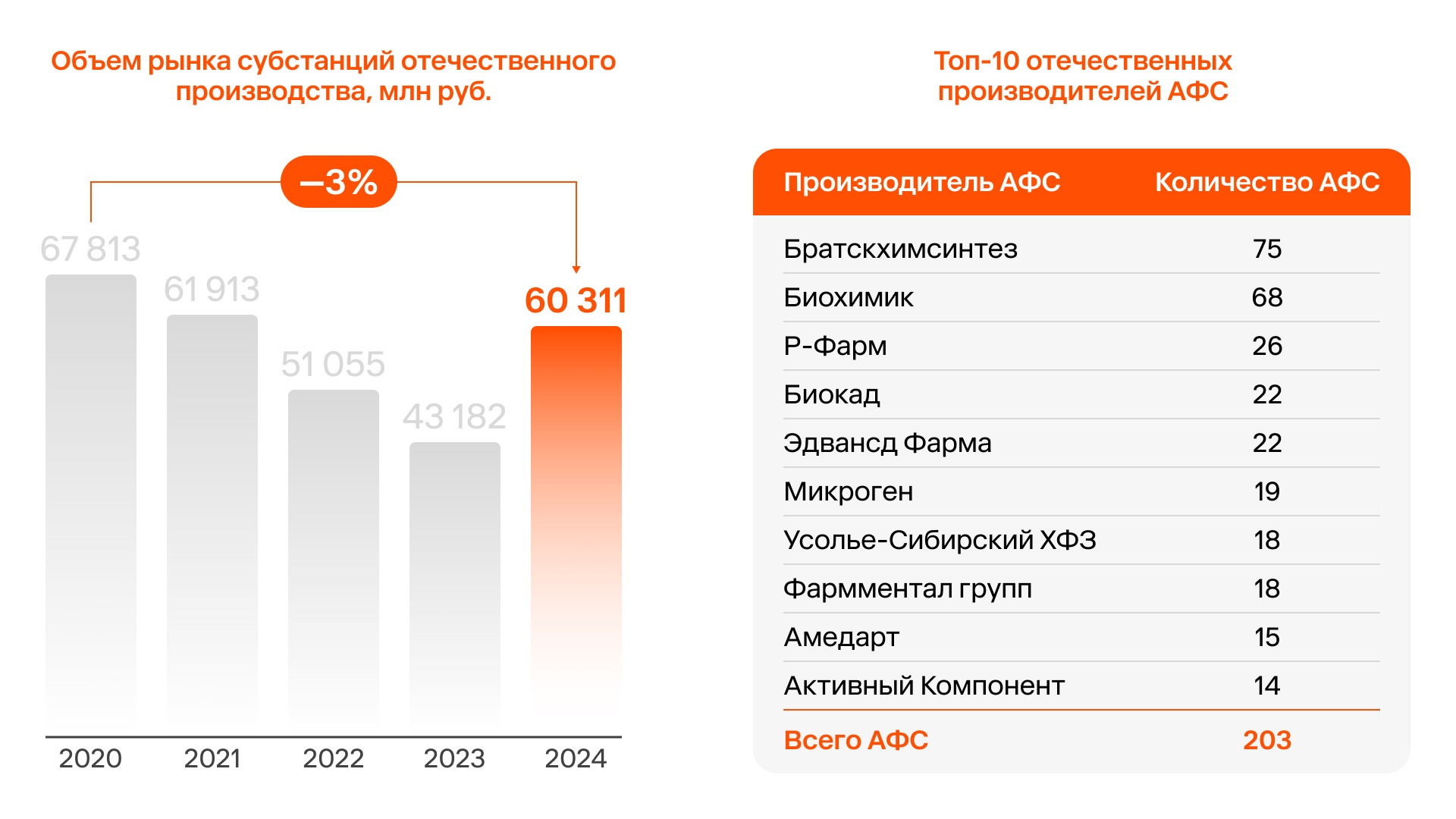 «Высокая зависимость от импортных субстанций пока сохраняется. Однако новые механизмы поддержки, в том числе правило „второй лишний“, субсидии и льготные кредиты, изменят многое: в ближайшие 5–7 лет ожидается расширение ассортимента и выпуск сотен наименований АФС. В целом мы уже видим укрепление позиций российских производителей, рост доли отечественной продукции на рынке лекарств. Эти процессы будут продолжаться».