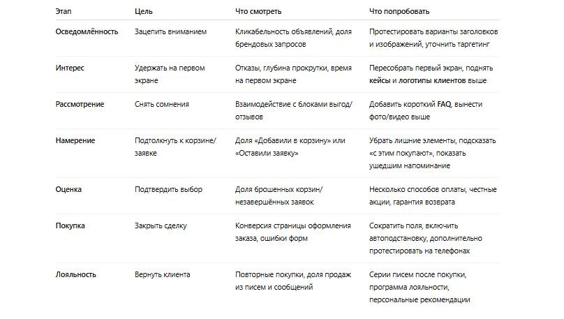 Осведомлённость, интерес, рассмотрение, намерение, оценка, покупка, лояльность. Как понять, где теряем клиентов?