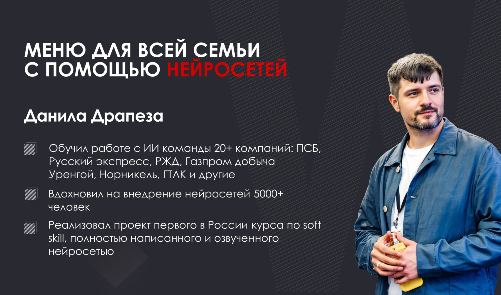 Эта история из реальной жизни: ученица нашей школы во время практики на одном из курсов рассказала, как она с помощью ChatGPT составляет меню на неделю за считанные секунды.