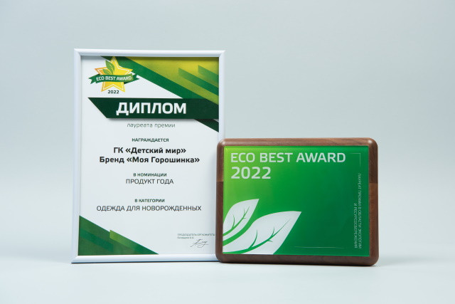 Собственная торговая марка коллекции одежды для новорожденных «Моя Горошинка», изготовленная из органического хлопка, стала победителем премии в номинации «Продукт года».