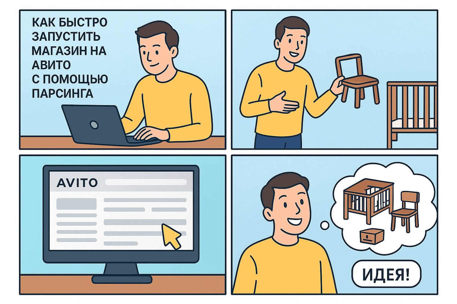 Примерно с таким сообщением к нам в Parsing Master обратился молодой предприниматель. Он решил открыть магазин детской мебели на Авито и выйти в продажу максимально быстро.