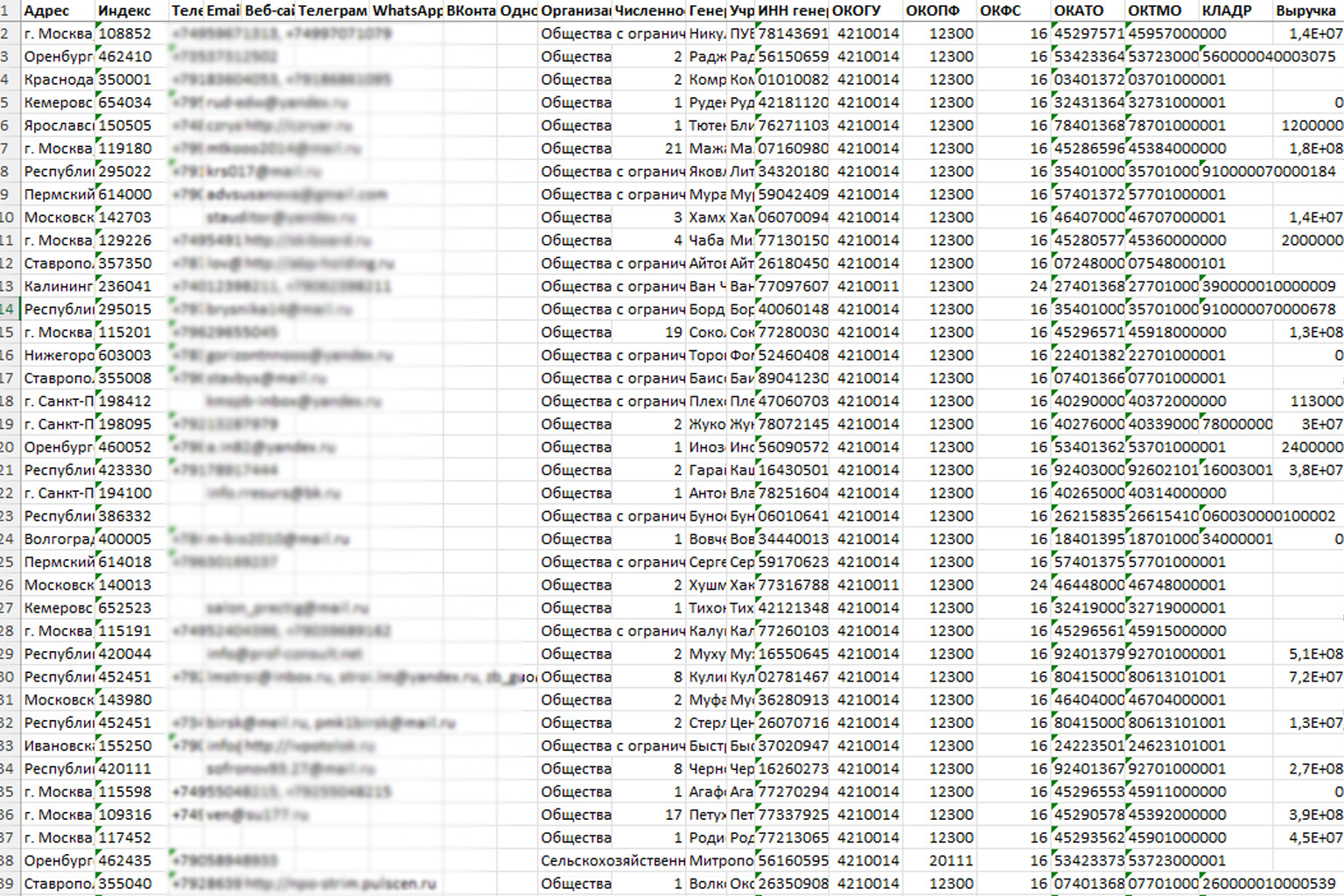 Например, мы Parsing Master парсим на серверных мощностях, проверяем поля, которые критичны для заказчика. Сбор ведётся по чётким параметрам: отрасль, ОКВЭД, регион, выручка, численность, контакты, наличие сайта. Причём параметры можно подобрать свои.