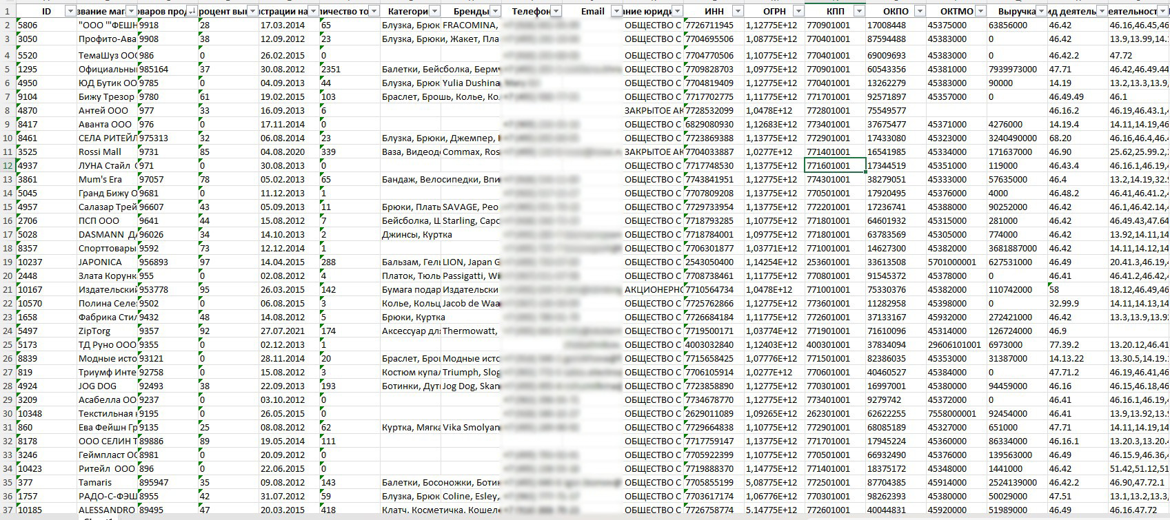 была собрана база более чем из 600 тысяч компаний с актуальными контактами.