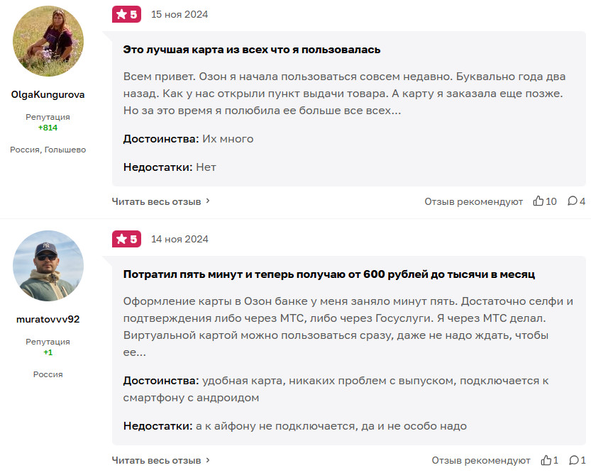 Отзывы клиентов об Озон банке, его карте и вкладах: какие плюсы отмечают пользователи