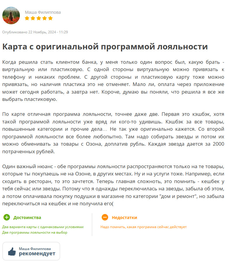 Что же не устраивает в программах лояльности Ozon банка тех, кто отмечает минусы?