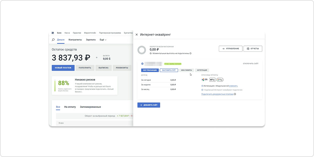 - Можно подключить до 30 сайтов к интернет-эквайрингу.