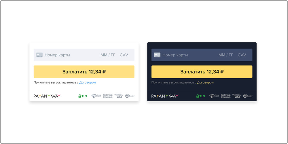 - Возможность брендирования платёжных страниц под дизайн сайта.