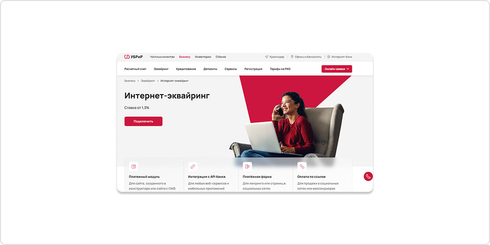 Комиссии и тарифы: фиксированная ставка находится в пределах 1,3–2,1%, точная комиссия зависит от вида деятельности бизнеса.