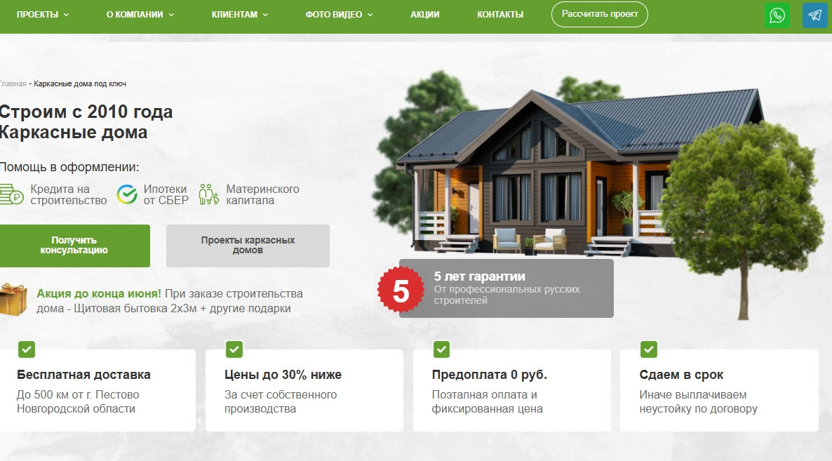 Компания с опытом в деревянном домостроении с 2008 года предлагает жителям Подмосковья и Ленобласти услуги строительства «под ключ» надежных каркасных домов. В каталоге большой выбор вариантов для постоянного или сезонного проживания, с разнообразными архитектурными и дизайнерскими элементами — балконом, верандой, крыльцом, мансардой, сауной, гаражом, камином, витражными окнами и прочим. Возможна разработка проекта с индивидуальными параметрами в рамках выделенного бюджета. Строительство ведется «под ключ», включая проведение всех инженерных коммуникаций. На каждой стадии возведения и отделки дома осуществляется строгий контроль. Менеджеры дают бесплатные консультации, подробно знакомят клиентов с ассортиментом и вариантами отделки, рассказывают о нюансах использования материнского капитала, кредитных и ипотечных средств.