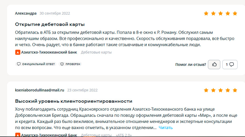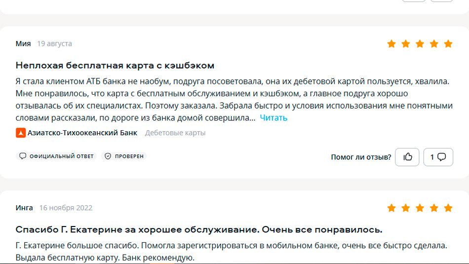 Дебетовые и кредитные карты АТБ: отзывы клиентов об услугах банка и уровне сервиса