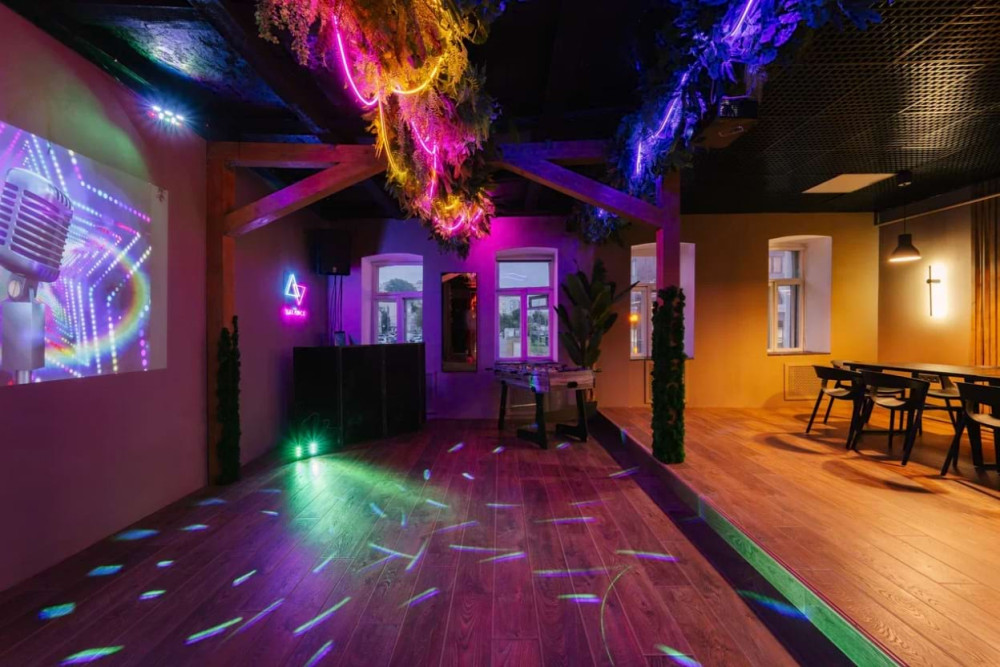 - Главный козырь: демократичная цена и удивительная «домашняя» мультиформатность. Здесь можно легко переключиться с банкета на игровую приставку, а с танцпола — на неформальные посиделки в мягкой зоне.