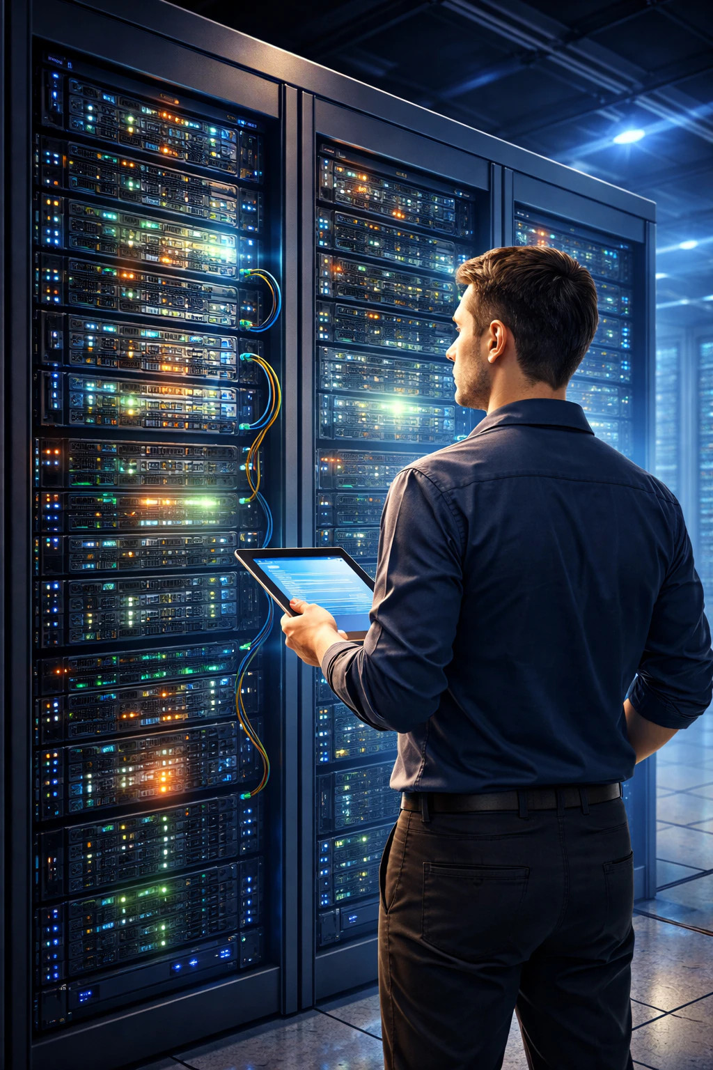Компания‑провайдер обеспечивает всё необходимое для стабильной работы сервера: питание, охлаждение и безопасное хранение оборудования. Серверы устанавливаются в стойки, где каждая машина имеет своё место и подключение к сети. Дата‑центр оснащён системами: