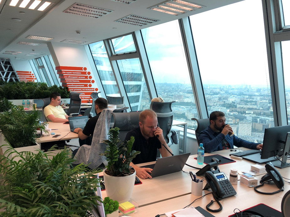 новые «фишки». Наш офис находится в Москва-Сити, на 57-м этаже башни «Империя», поэтому потрясающие виды за окном обеспечены даже зимой. А внутри у нас всегда лето и зелено. Как во многих компаниях, у нас гибридный режим работы, то есть можно приезжать в офис или работать из дома. Современные средства связи позволяют общаться и дискутировать с коллегами не только из московского офиса, но из других офисов, чаще всего, конечно, с Казахстаном, где находятся централизованные функции компании (главное не забывать про трехчасовую разницу во времени между Москвой и Алматы). Не так давно проводили опрос по поводу режима работы и