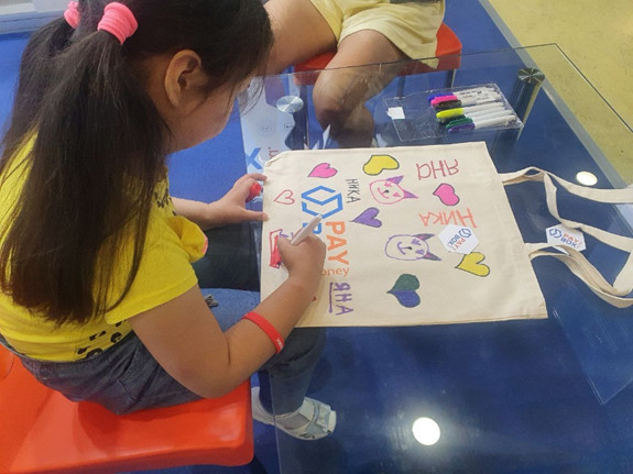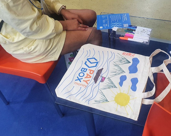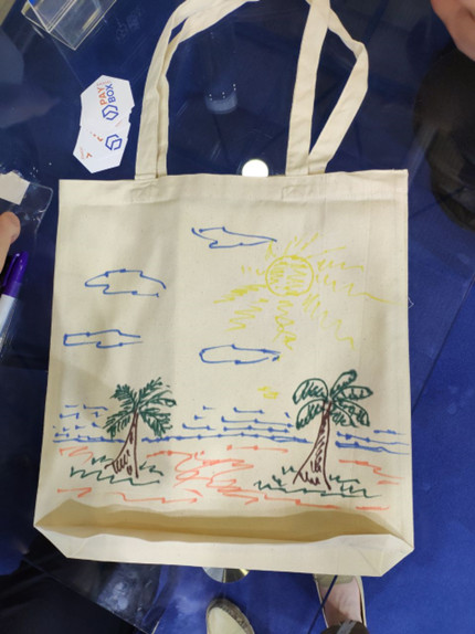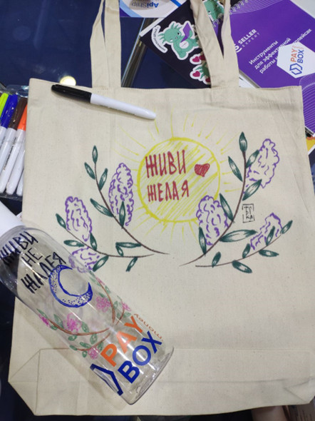 желающим было предложено сделать рисунки на наших корпоративных сумках и