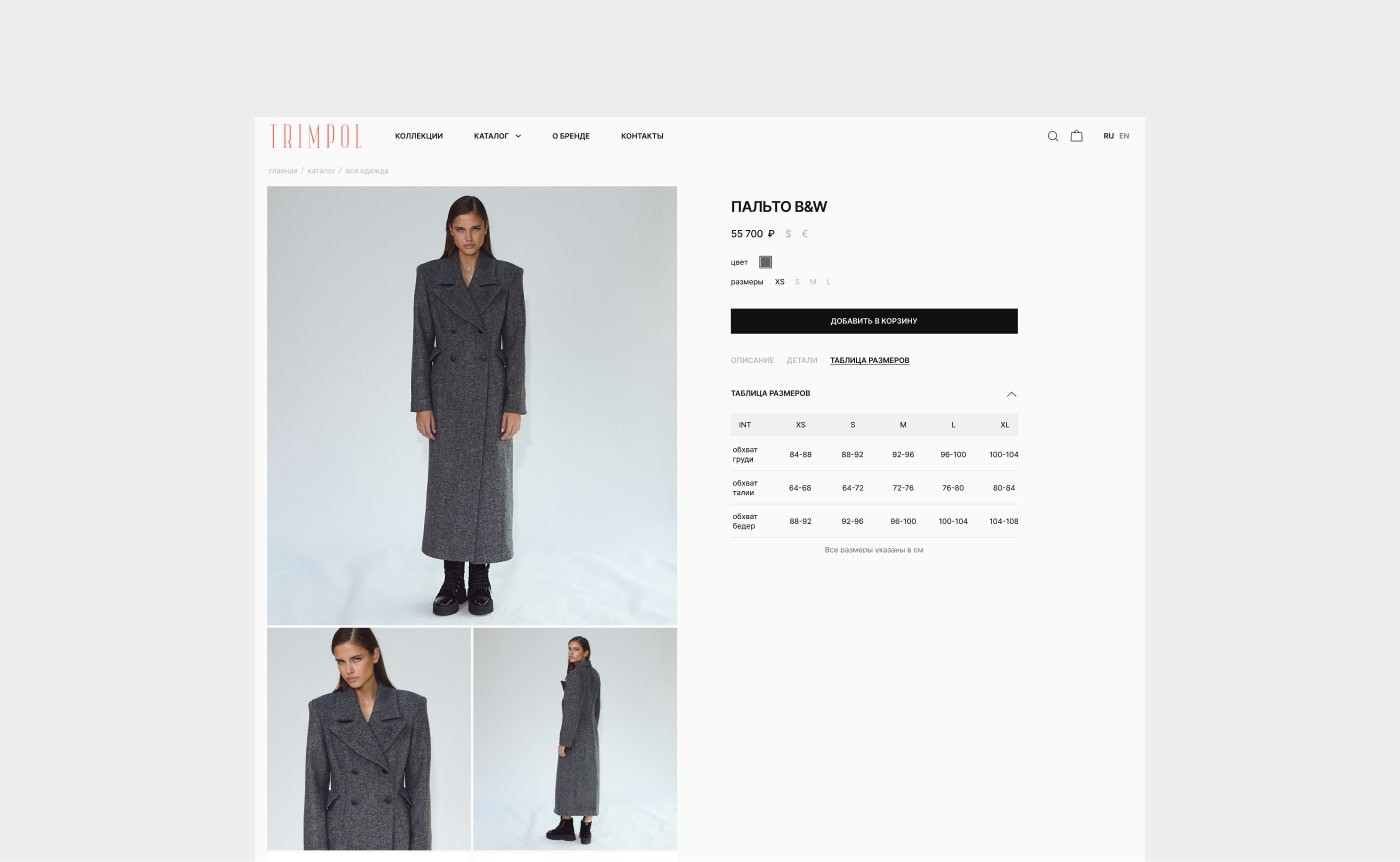 TRIMPOL — российский бренд женской одежды. Бренд создаёт элегантные вещи, подчеркивающие харизму и уверенность каждой женщины — будь то встреча в офисе, бранч с подругами или вечерняя прогулка.