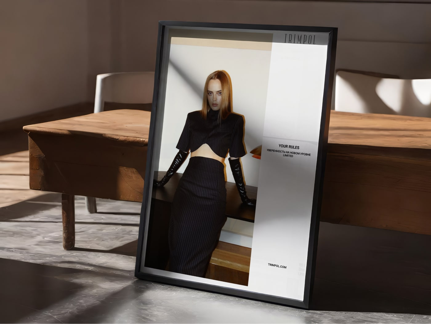 Мы начали с глубокой аналитики: изучили бренд, аудиторию и рынок. Поняли, что одежда Trimpol работает как «усилитель уверенности». Это не просто наряды — это способ почувствовать себя особенной. Эта идея легла в основу будущей визуальной и рекламной стратегии.