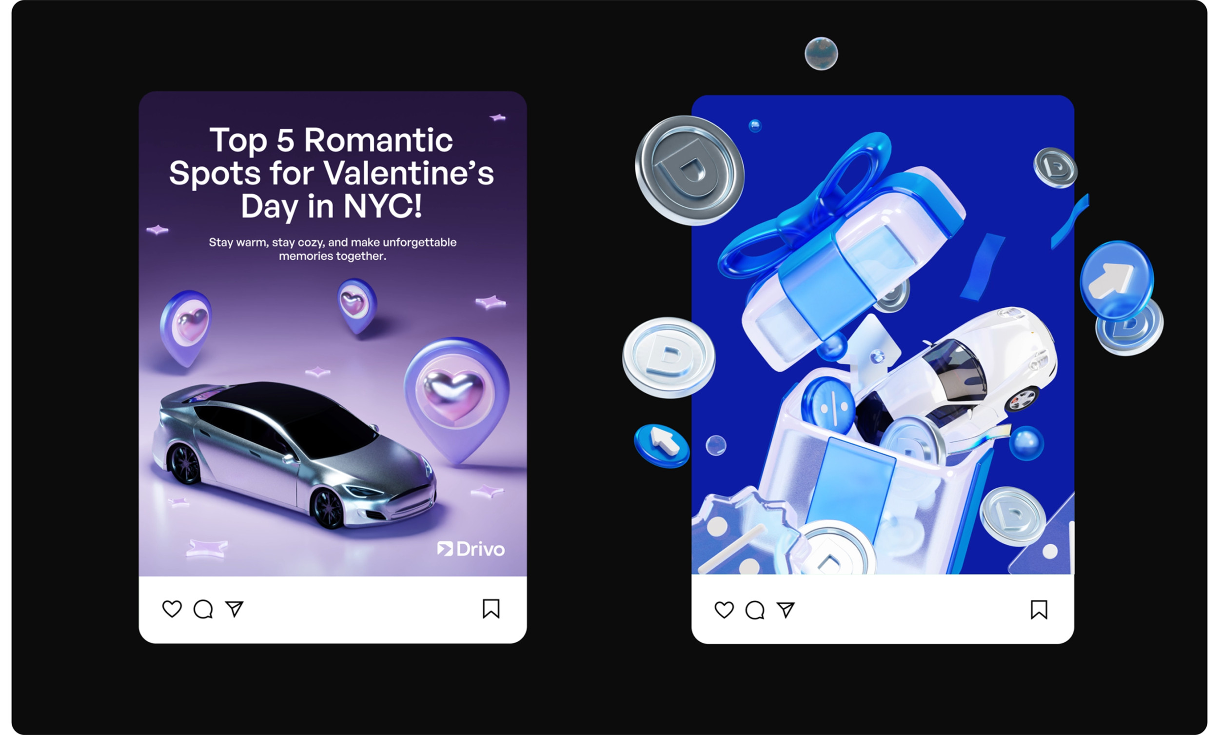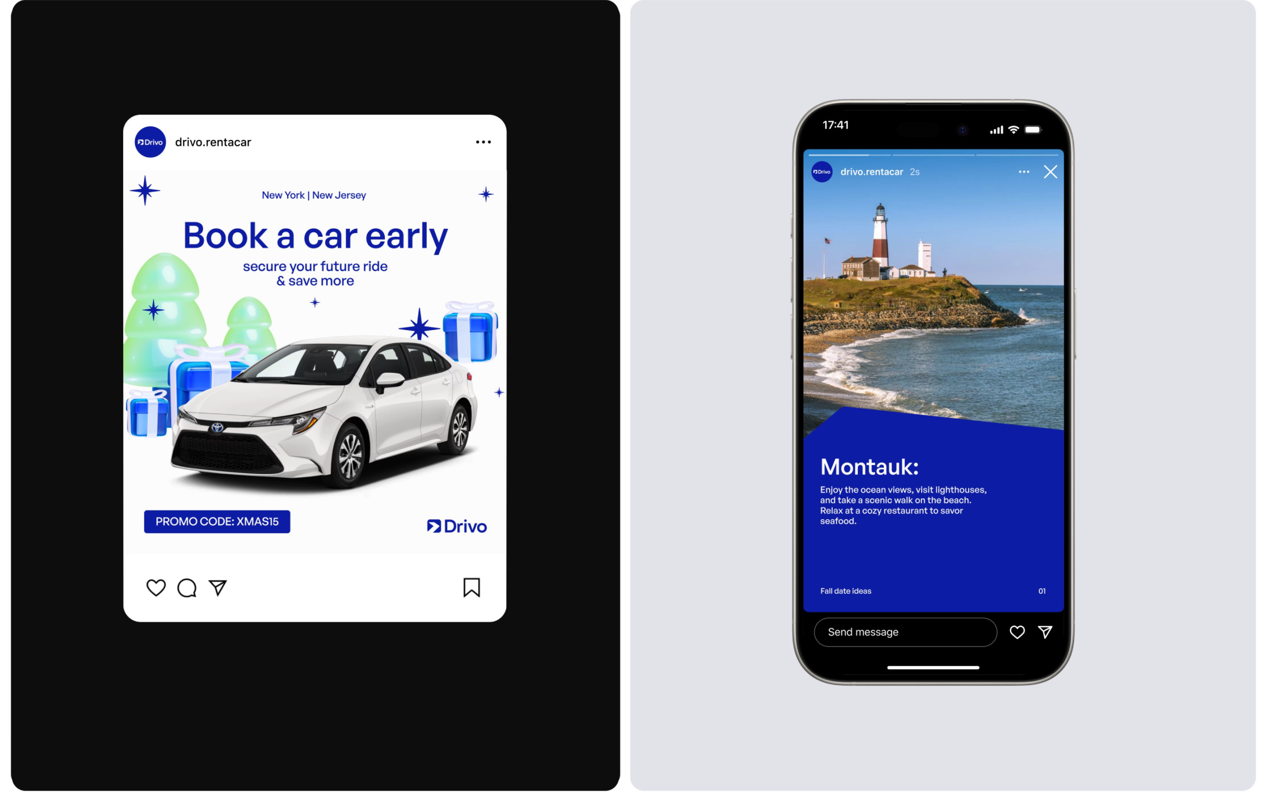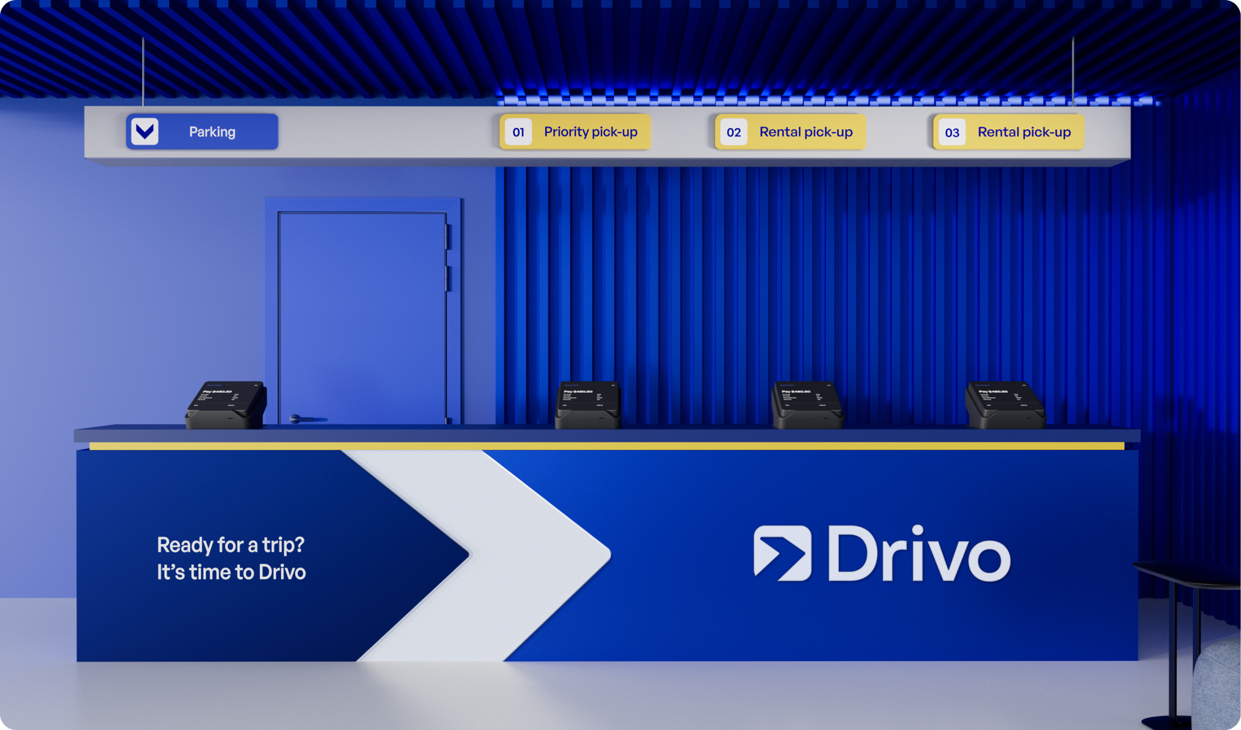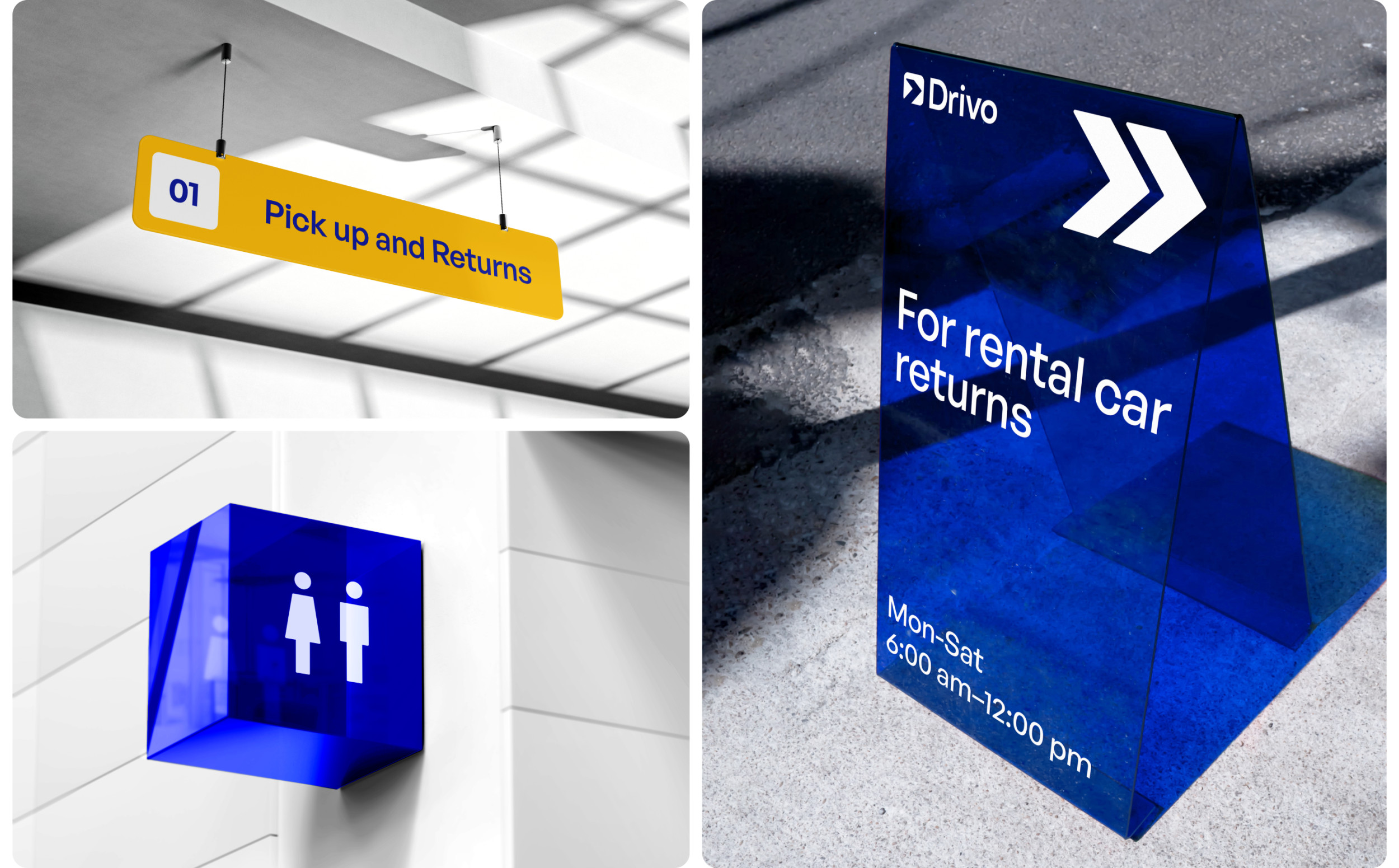 Мы начали с глубокого анализа. Исследовали все точки контакта: офлайн-стойки, сайт, соцсети, приложение. Стало очевидно: у Drivo отсутствует единый пользовательский опыт. В одной локации — терминал в фирменных цветах, в другой — нейтральная стойка без единого логотипа. Мы провели конкурентный анализ — от международных агрегаторов до локальных дилеров. Большинство фокусировались на цене и ассортименте. Но у Drivo был потенциал стать технологичной платформой, которая решает задачу клиента быстро, понятно и без стресса. Вместе с этим мы провели серию интервью с клиентами и менеджерами, определили основные pain points: путаница в локациях, разные стандарты обслуживания, несогласованная визуальная идентичность. На основе анализа мы пришли к выводу: бренду нужно выстроить целостную экосистему. Обновить визуальный стиль, выровнять коммуникации и создать комфортный пользовательский путь — от первой точки касания до возврата автомобиля. Мы отказались от идеи продавать Drivo как «прокат авто». Вместо этого сделали акцент на скорости, удобстве и заботе о клиенте. Было сформулировано новое позиционирование: Drivo — это не просто рентал, а платформа для передвижения, которая делает процесс аренды максимально простым и технологичным. Tone of voice — дружелюбный, но уверенный. Мы говорим с клиентом на его языке, объясняем сложное простыми словами, оставаясь при этом современным и понятным брендом. Это позиционирование легло в основу всех визуальных и вербальных решений: от сайта и соцсетей до стоек аренды и униформы сотрудников. Создание нового визуального языка началось с палитры: глубокий синий стал основным цветом — как символ надежности и движения. В паре с ним — чистые линии, светлые акценты и типографика, подчеркивающая современность. Мы переработали логотип, объединив элементы движения и архитектуры города. Визуальные метафоры стали связующим звеном между физическим пространством Нью-Йорка и цифровым опытом аренды. Каждая точка аренды стала частью единой системы. Мы внедрили визуальную навигацию, разделили процесс аренды на три зоны — приоритетный pick-up, обычный rental и возврат. Благодаря визуальным элементам, цифровым табло и инструкции, взаимодействие с брендом стало простым и приятным. Ранее digital-присутствие Drivo не отражало сути бренда. Мы пересобрали визуальный стиль для соцсетей: яркие 3D-объекты, прозрачные текстуры, узнаваемые паттерны. Контент стал ближе к пользователю. Мы рассказали реальные истории: «как снять авто за 5 минут», «что делать, если нет SSN», «какие машины подойдут для семьи». Вместо стоковых фото — честные Reels с участием клиентов и сотрудников. Отдельный фокус — Instagram и Facebook. Мы внедрили формат сторителлинга, использовали личный тон, оживили коммуникацию. Сайт — ключевая точка контакта. Мы переработали структуру по модели AIDA: захват внимания, раскрытие ценности, объяснение условий, быстрый CTA. Добавили фильтры, страницы под кредитные программы, интеграцию с CRM. Оптимизировали скорость, упростили путь от главной до финального экрана бронирования. Дизайн будущего мобильного приложения адаптировали под новый визуал и UX — seamless-опыт с любого устройства стал обязательным стандартом. Форма сотрудников, брелоки, буклеты, скидочные карты — каждая деталь говорит: Drivo — это про заботу. Мы сделали визуал консистентным: всё говори