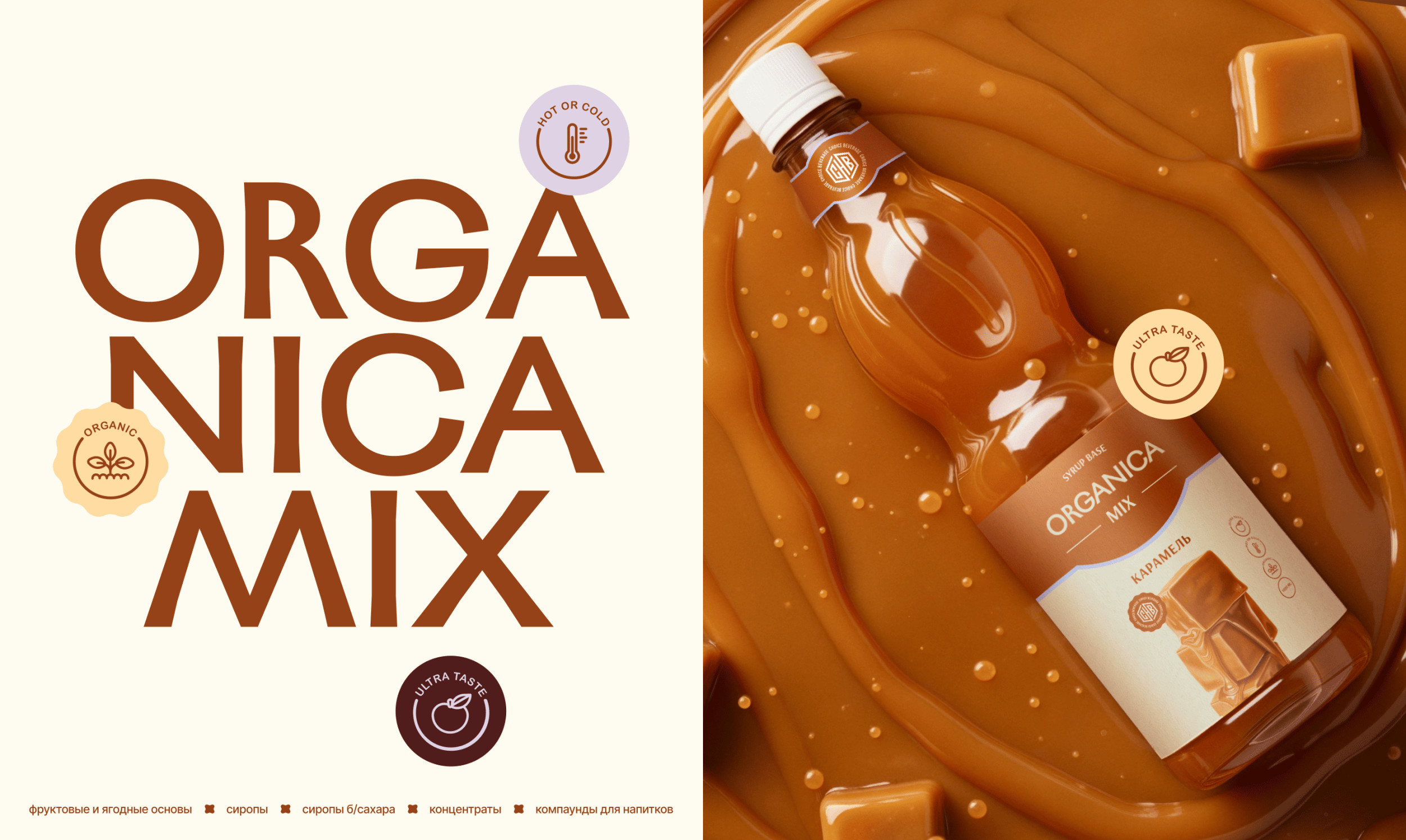 Organica Mix — производитель фруктовых концентратов и сиропов, который активно используется в HoReCa: кофейнях, барах и заведениях, где важны скорость работы, удобство и понятная навигация по вкусам.
