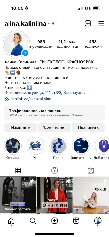 Наш клиент — врач-гинеколог, которая работает также в направлении эстетической и хирургической интимной медицины. Честная, с чувством юмора и уникальной подачей. Именно такие проекты дают самые мощные результаты, когда контент-процессы выстроены правильно.